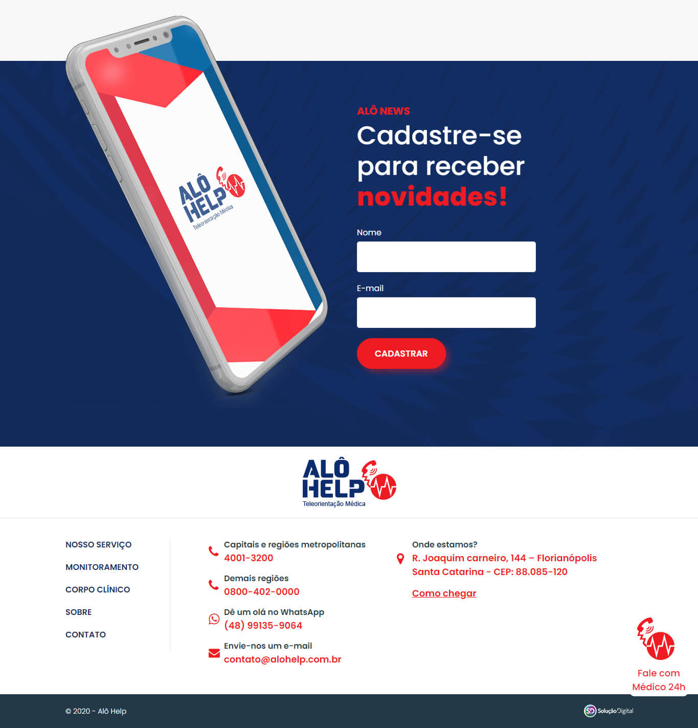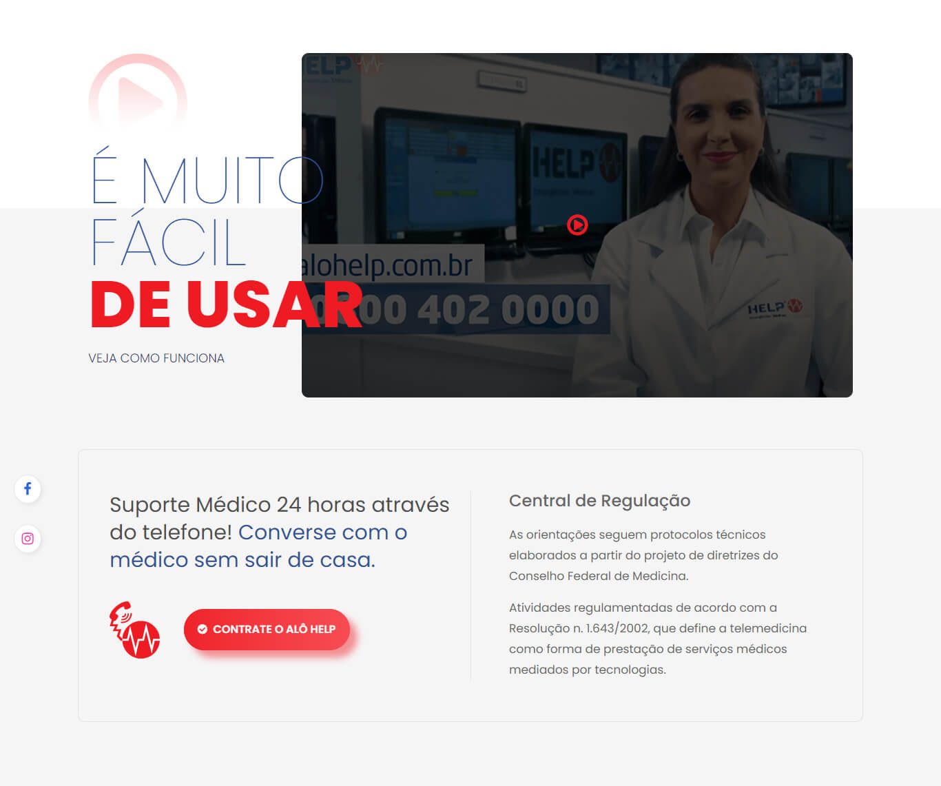 O Alô Help é um produto da marca Help Emergências Médicas, para criar e desenvolver o hotsite de divulgação do produto, a Solução Digital foi convidada novamente para mais uma parceria com a empresa Help Emergências Médicas.