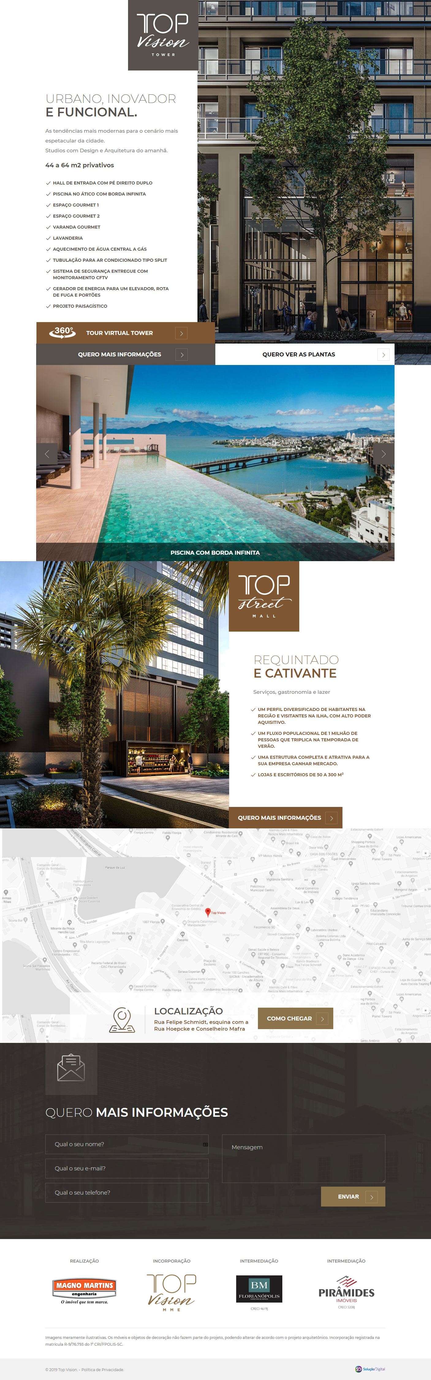 A Solução Digital foi responsável pela criação e desenvolvimento do hotsite Top Vision, um empreendimento da Magno Martins para marcar a história de Florianópolis.