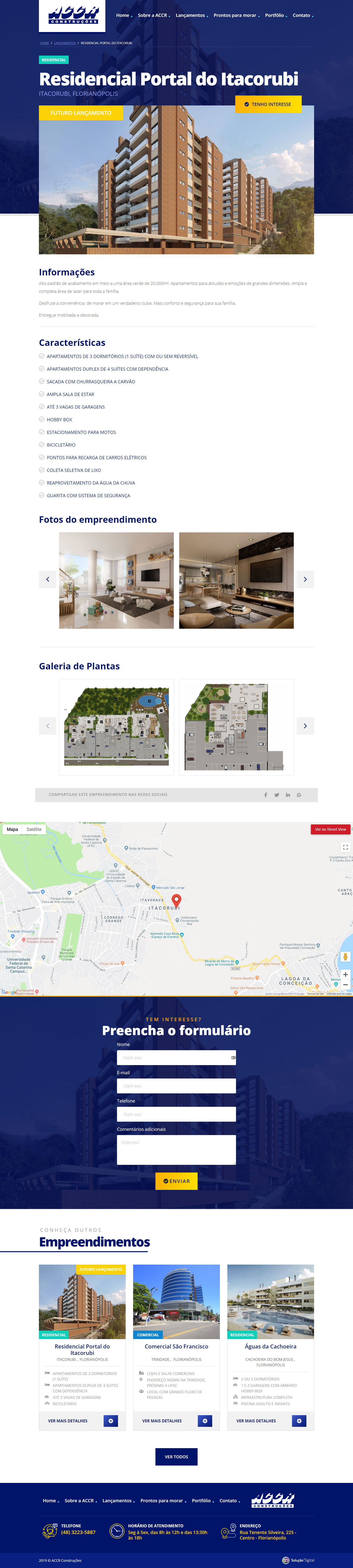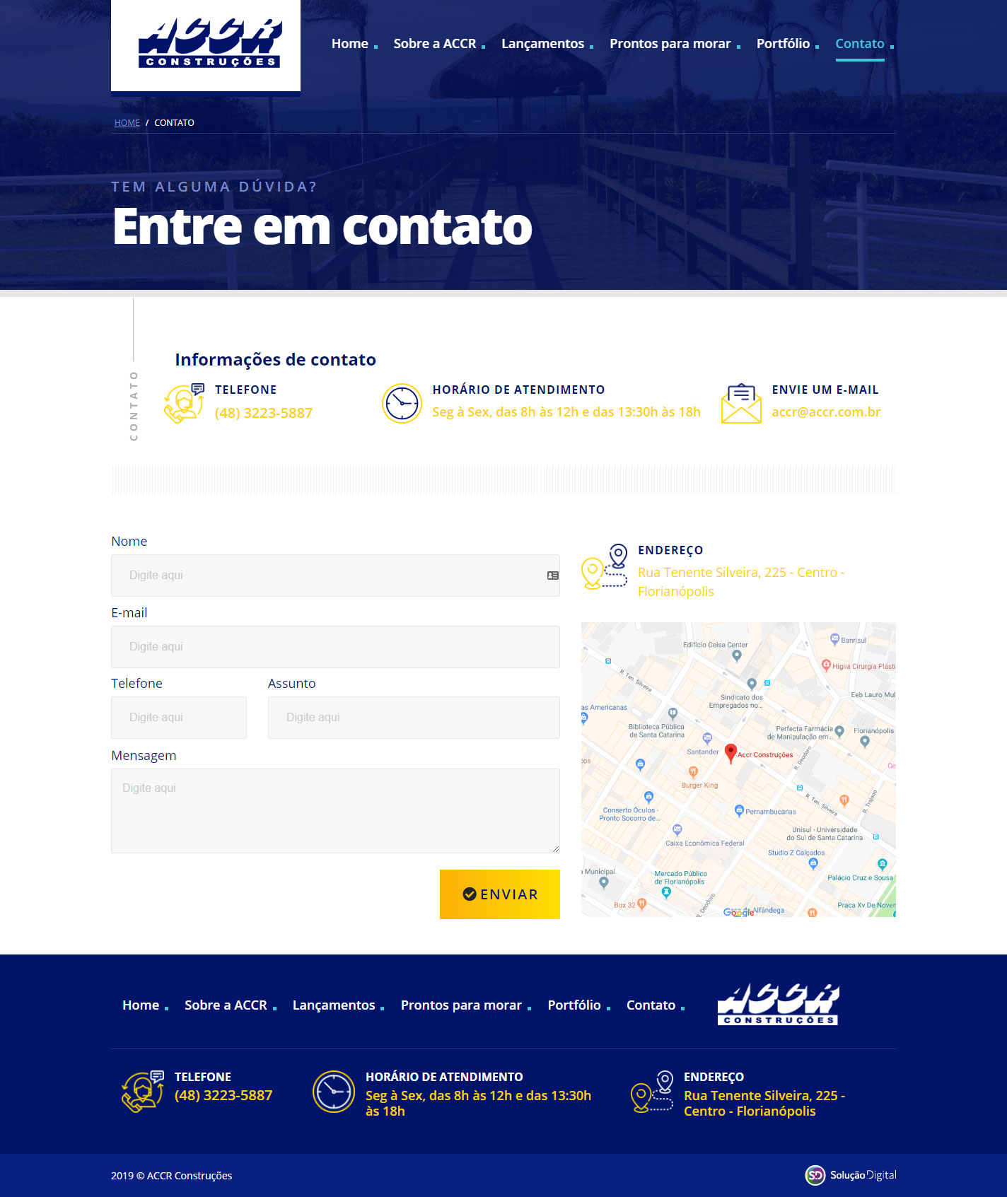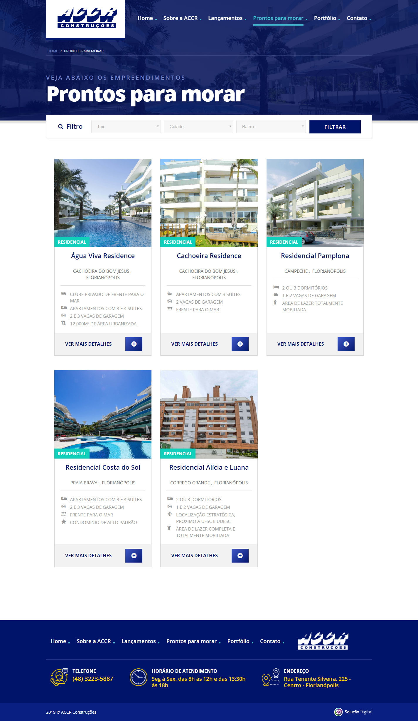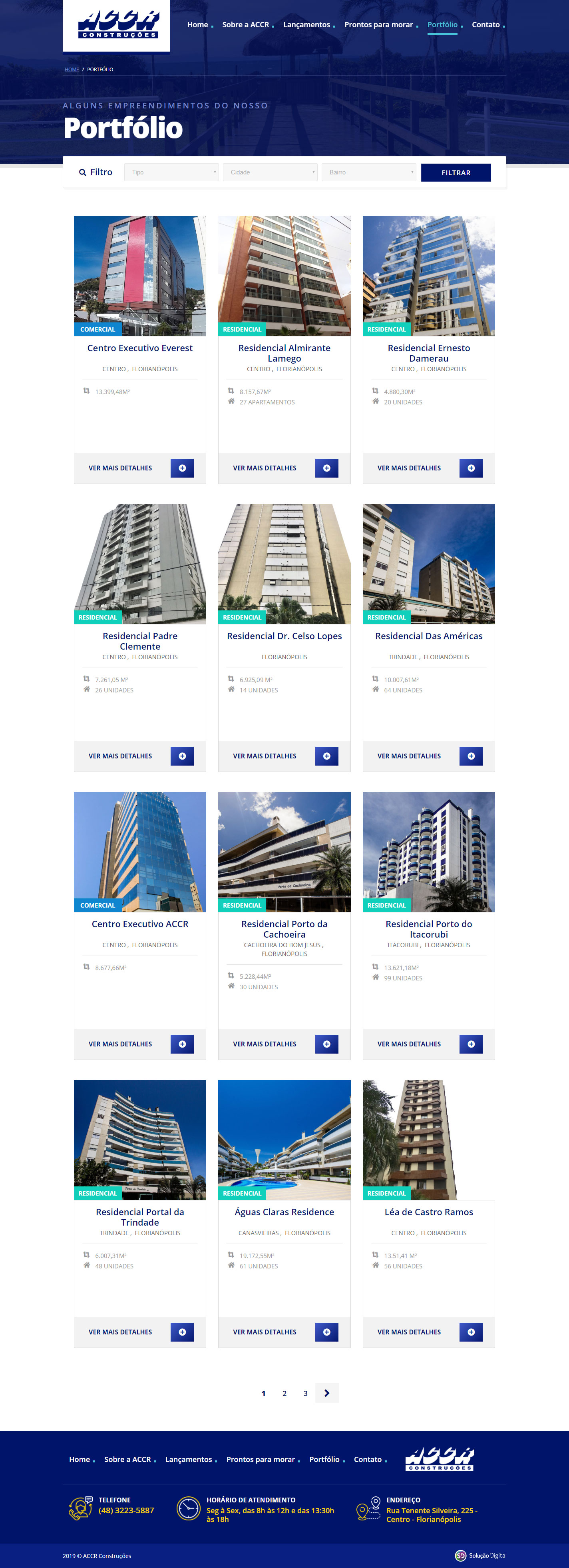 O novo site da ACCR Construções foi completamente criado e desenvolvido do zero pela Solução Digital. O principal objetivo do projeto era apresentar todos os empreendimentos da empresa de forma simplificada, fácil e atrativa aos usuários, priorizando o acesso através de dispositivos móveis.