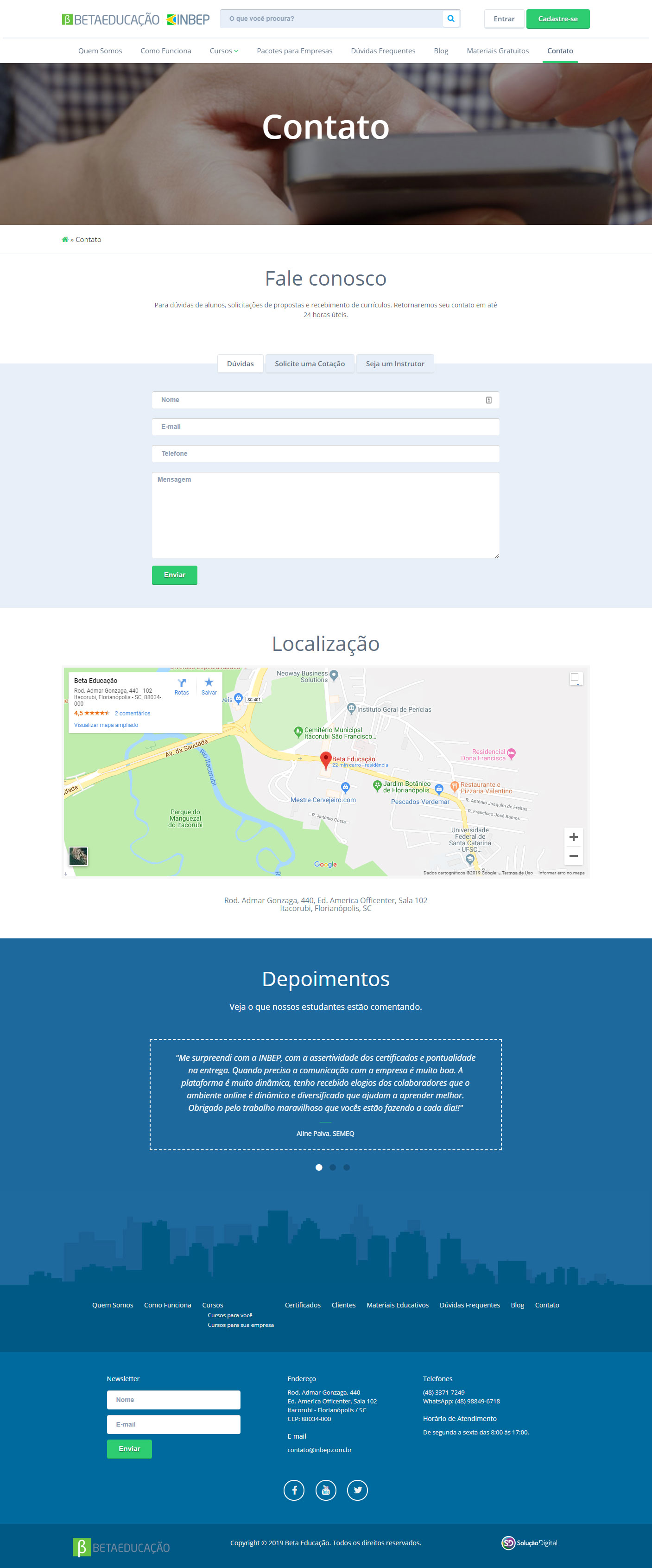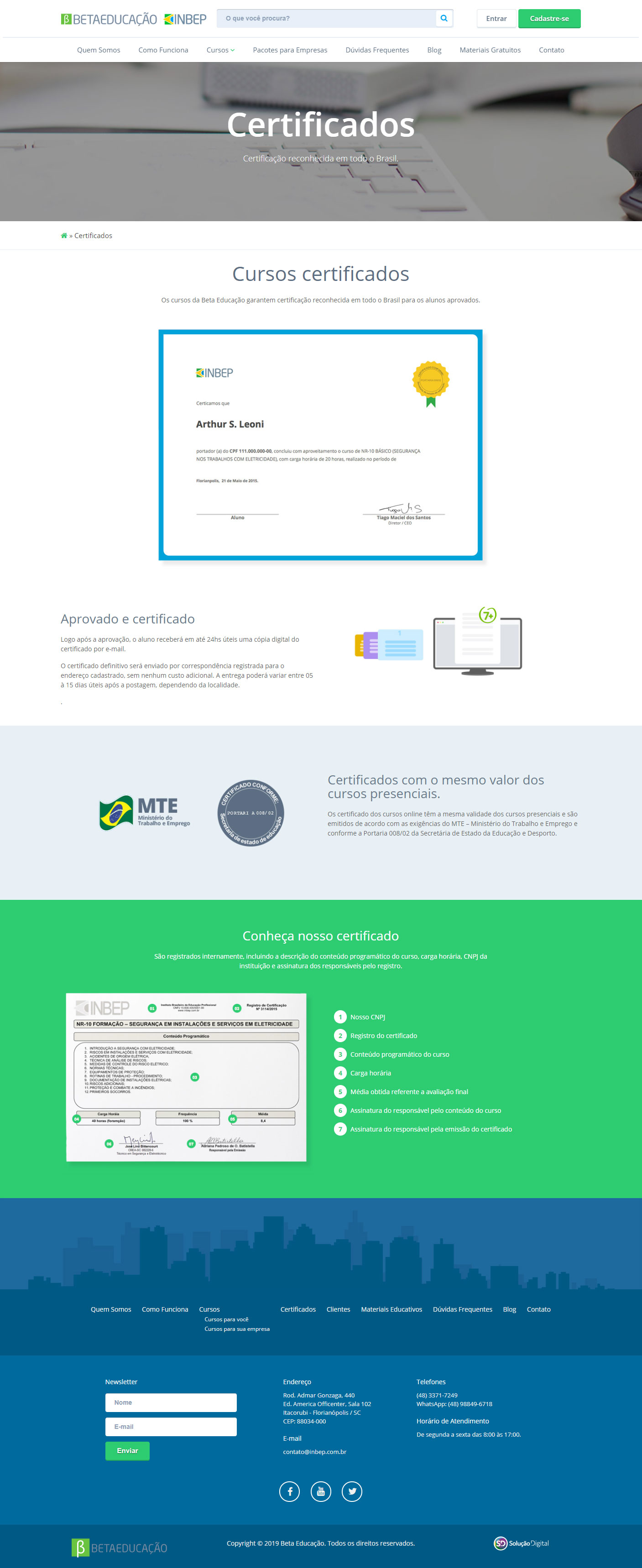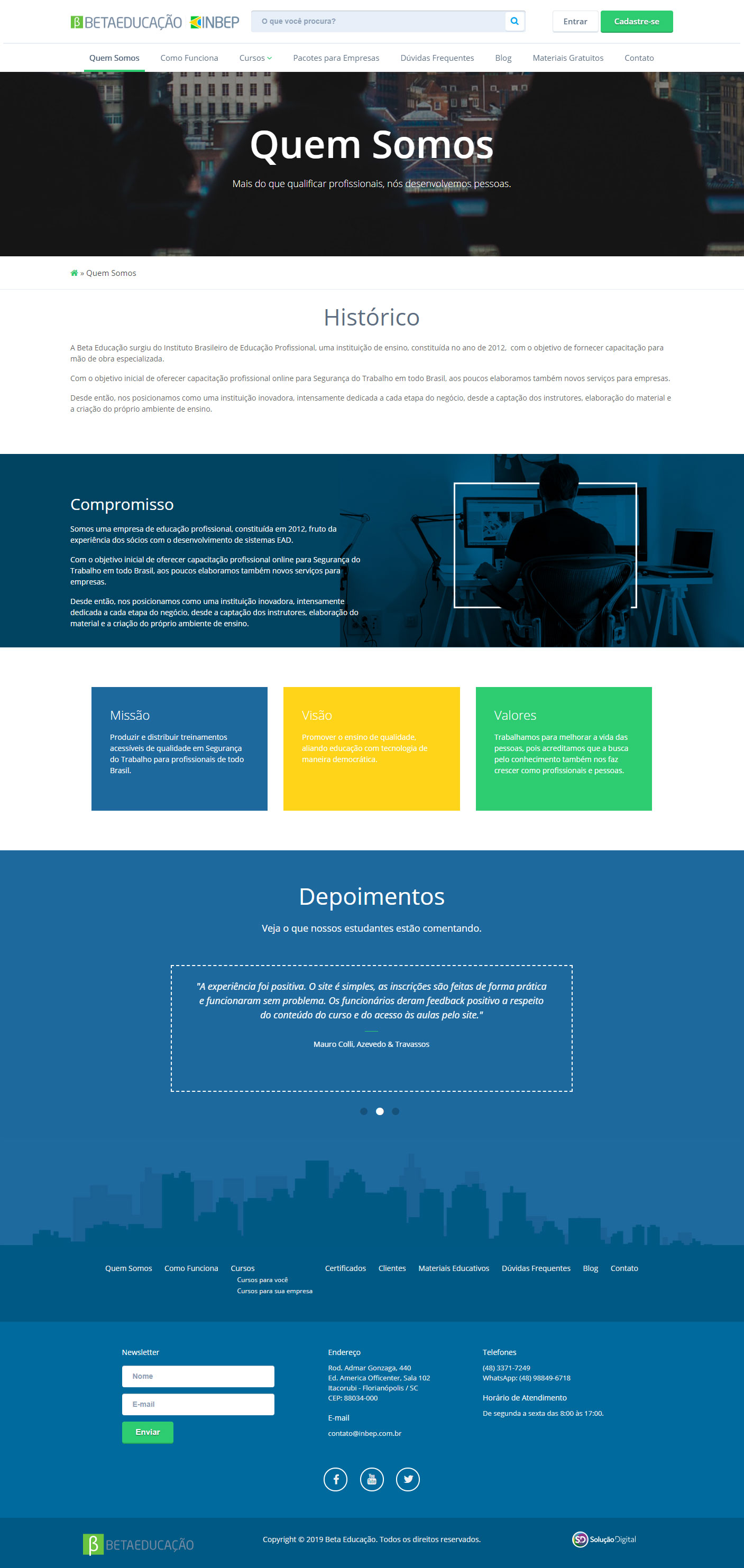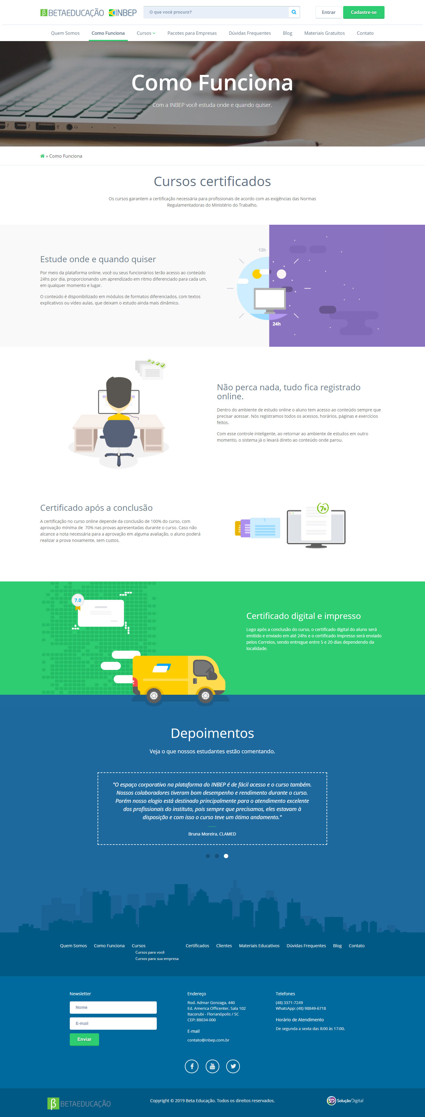 O site foi criado e desenvolvido pela Solução Digital em formato responsivo, preparado para integração com o sistema da Beta Educação, com intuito de apresentar, divulgar e realizar a venda do seus cursos on-line, além de ser a porta de acesso à sua plataforma EAD.