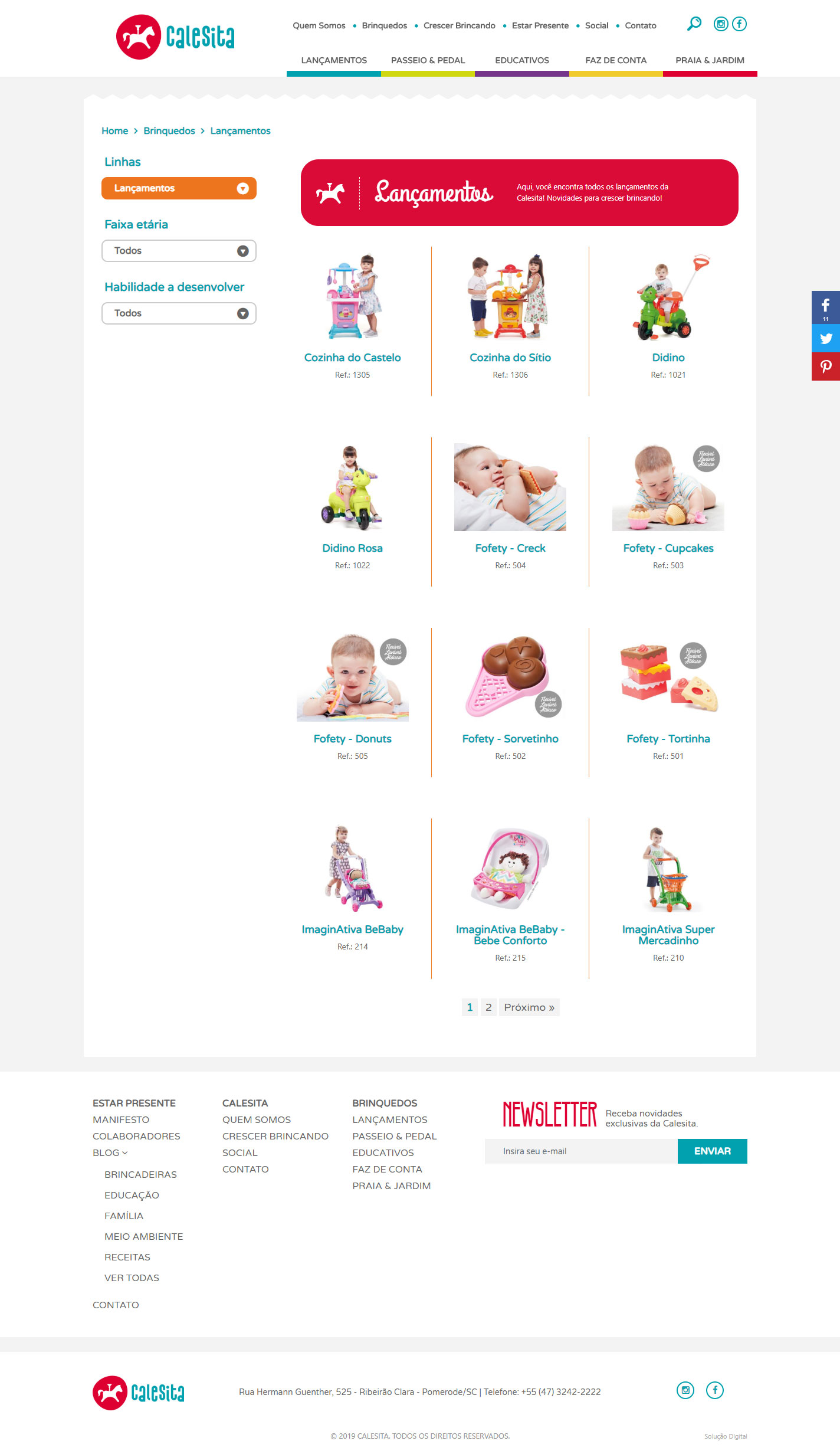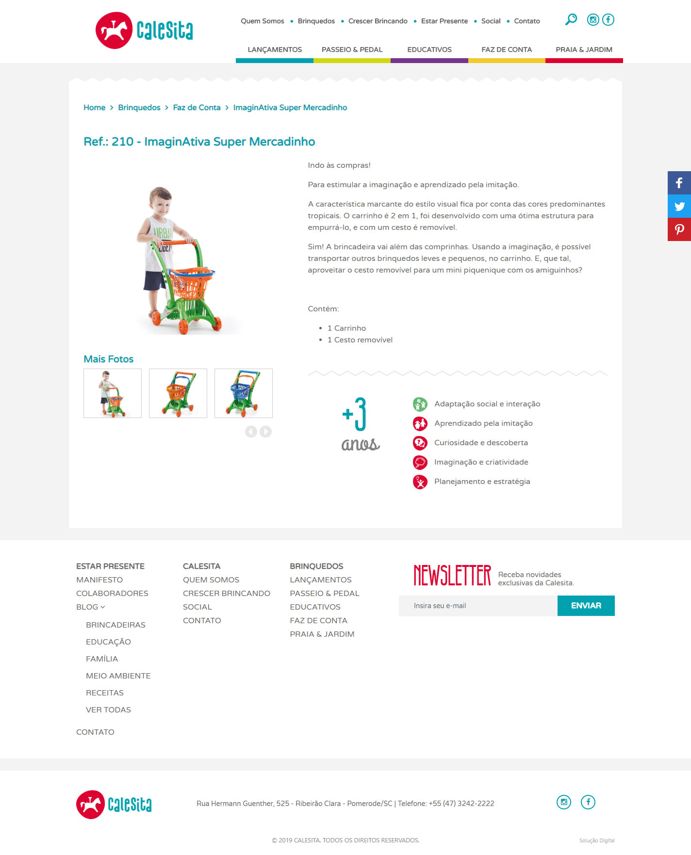 A Calesita acredita que toda criança deve crescer brincando e que cada fase é importante. Todos os brinquedos da Calesita são desenvolvidos com muito carinho e cuidado, pois o brinquedo estimula a criança a desenvolver a coordenação motora, a atenção, a criatividade, memória, além de facilitar o desenvolvimento cognitivo e emocional. Os brinquedos da marca Calesita podem ser encontrados nas principais lojas no Brasil e América Latina.