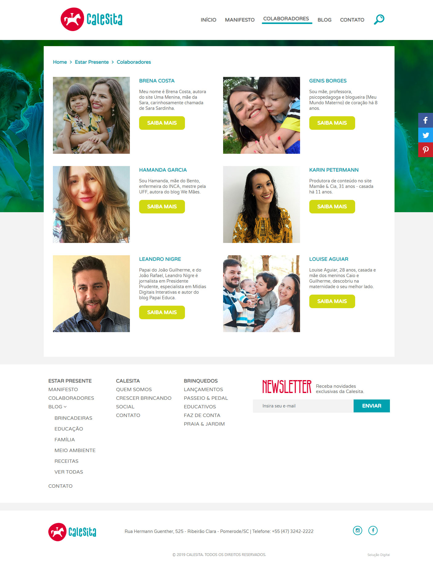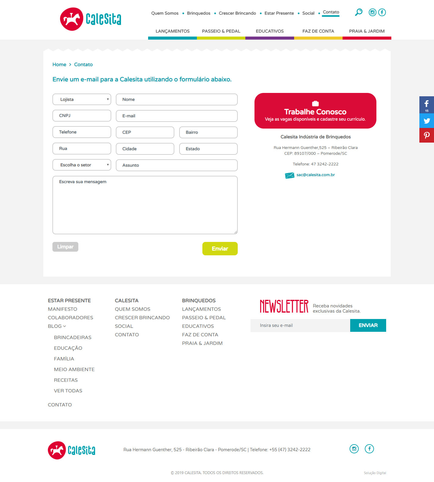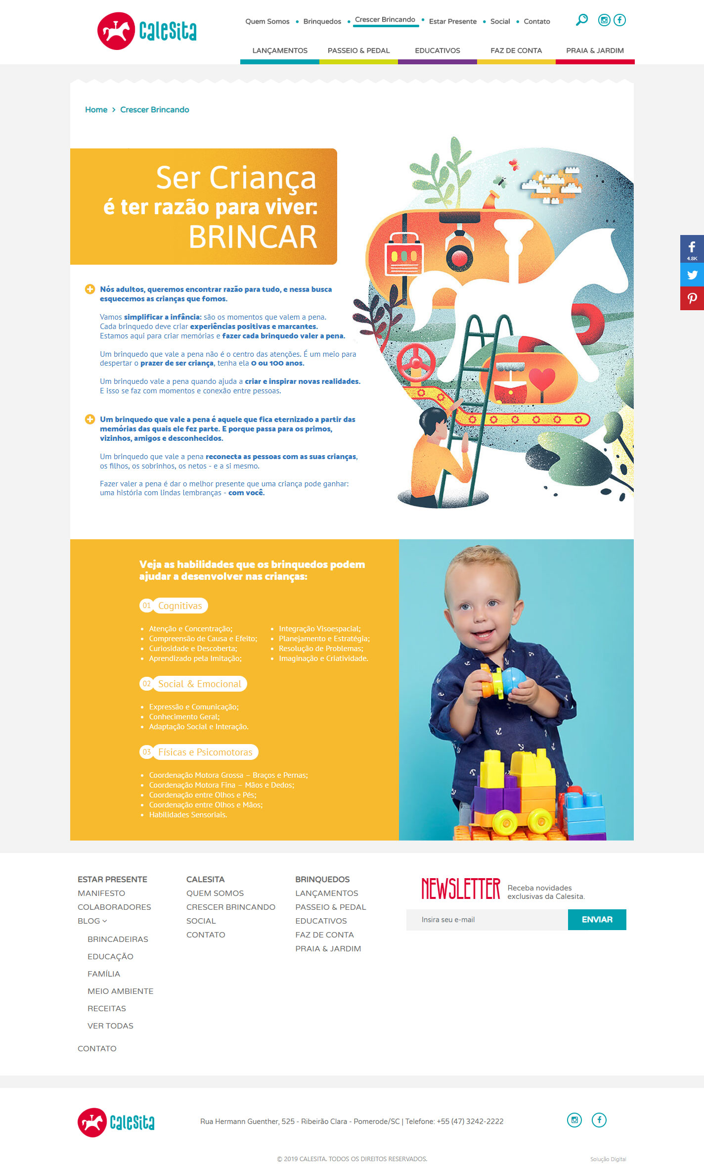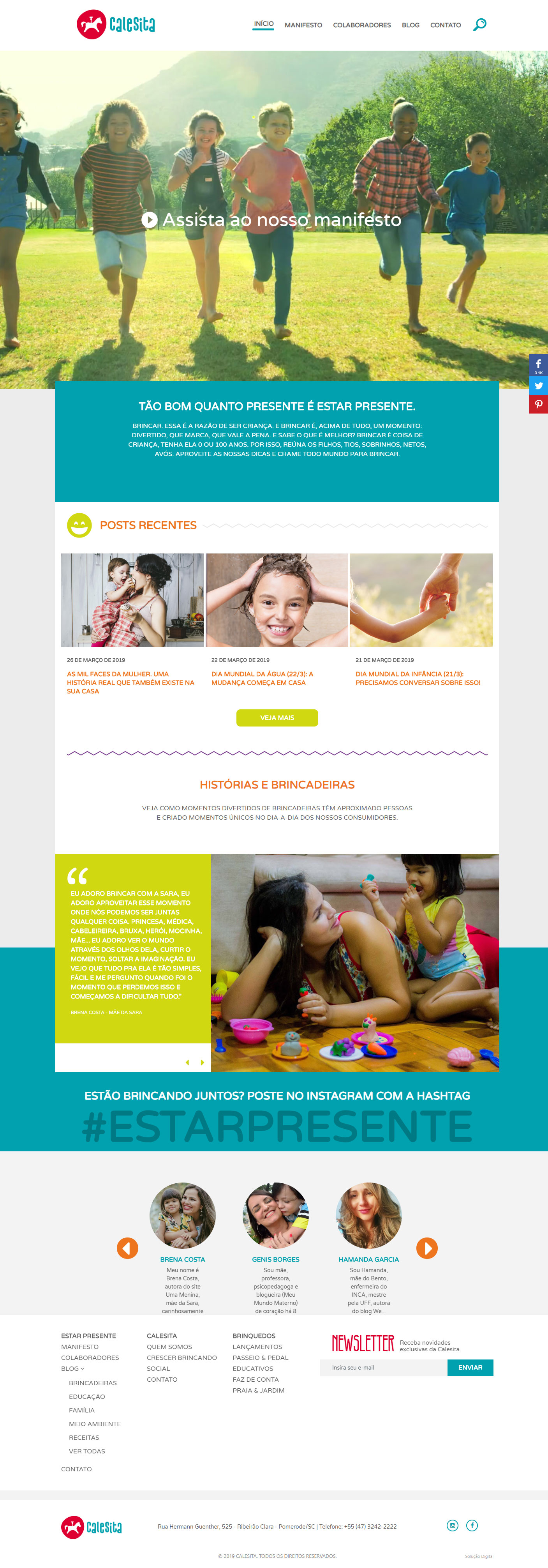 Em parceria com a Seven Comunicação, responsável pela parte criativa, os projetos do Novo Site Calesita Briquedos e Hotsite Crescer Brincando, foram desenvolvidos com layouts responsivos – que se adaptam a telas em desktops, tablets e smartphones, com seus conteúdos otimizados, para melhor performance e indexação. Além disso o conteúdo dos projetos é facilmente gerenciável pelo cliente e, principalmente, pelos colaboradores do hotsite Estar Presente, através de usuários independentes.