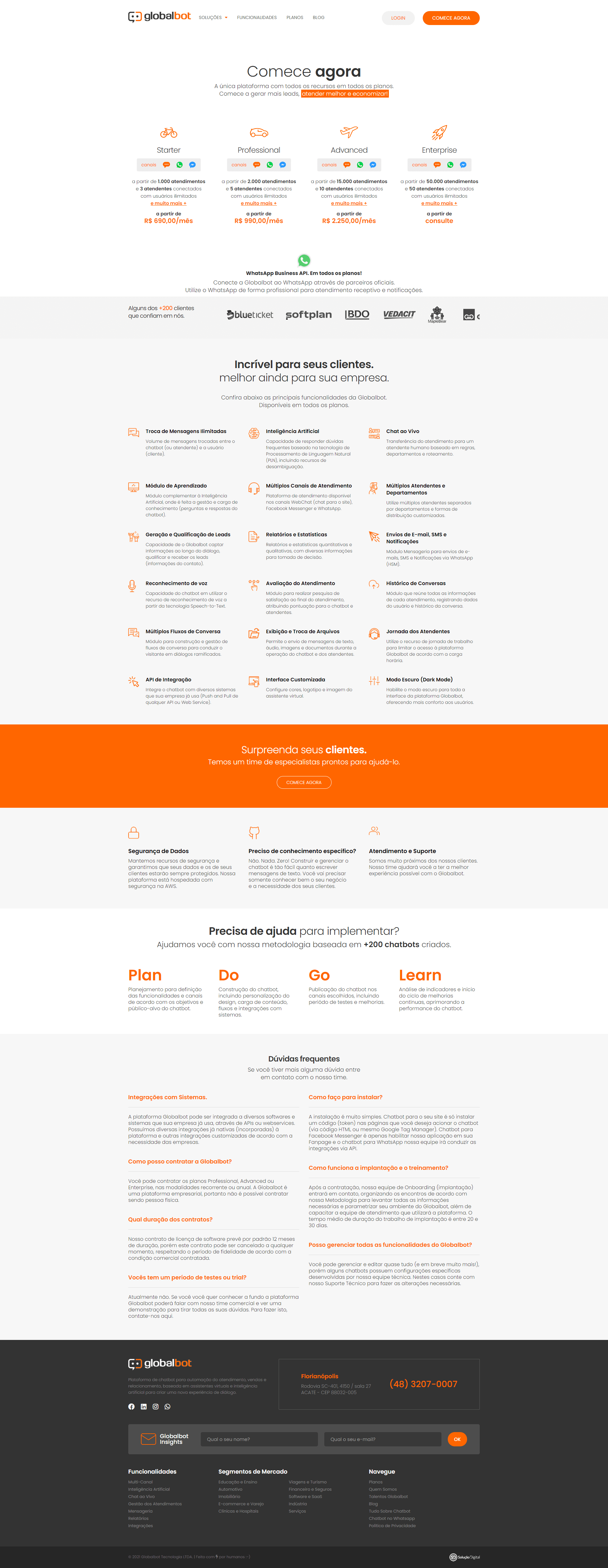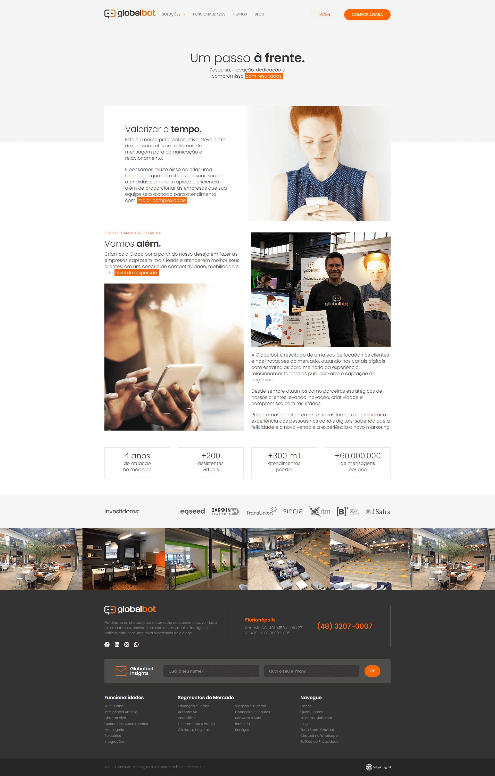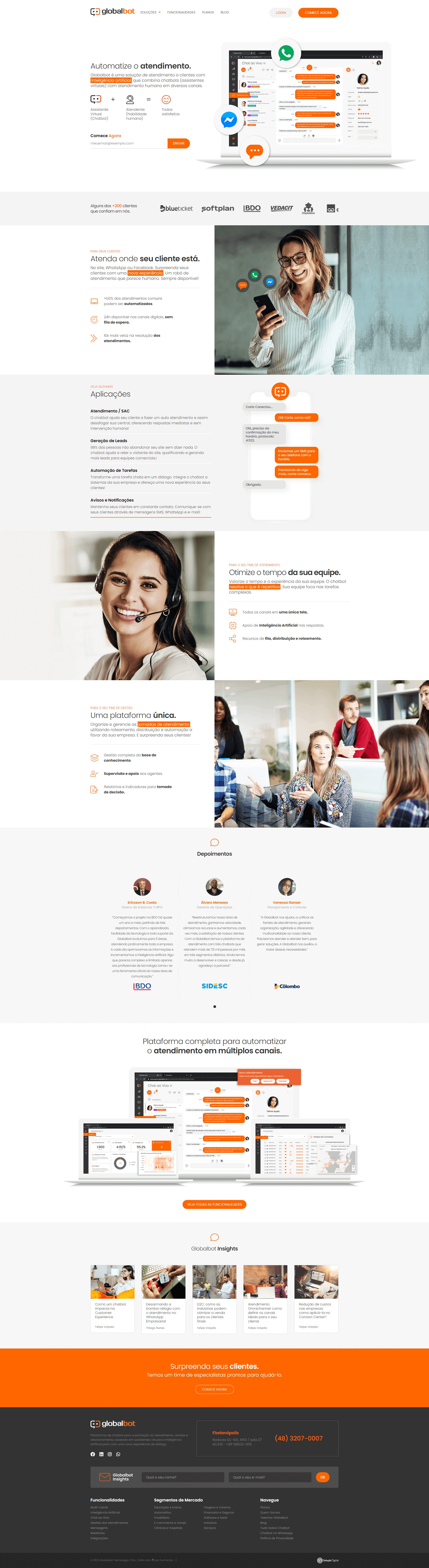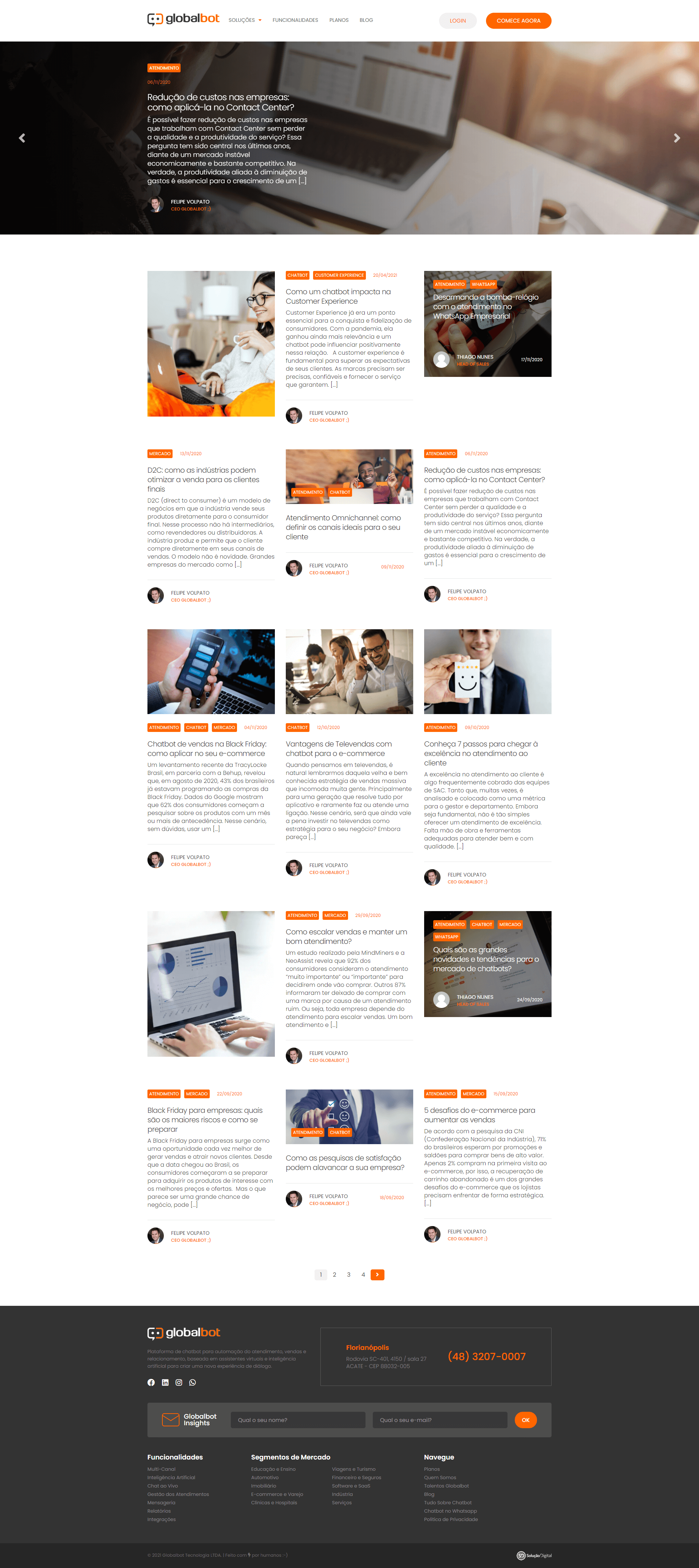 A Solução Digital por ter uma forte experiência em WordPress, conquistou a confiança do cliente e teve o privilégio em criar e desenvolver o novo site e blog da Globalbot.