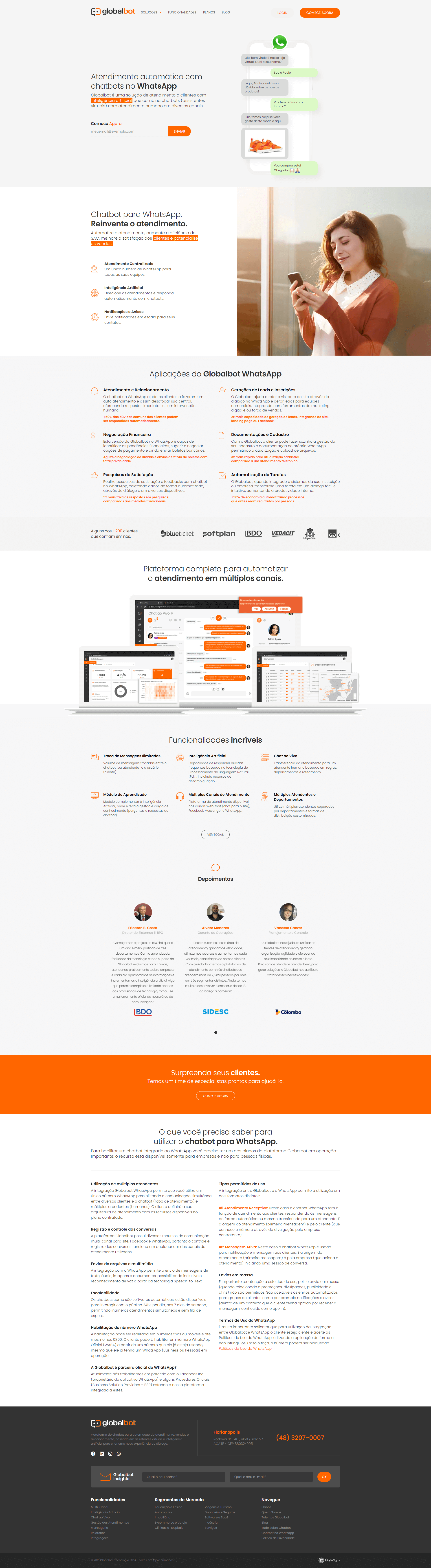 Globalbot é uma solução de atendimento a clientes com inteligência artificial que combina chatbots (assistentes virtuais) com atendimento humano em diversos canais.